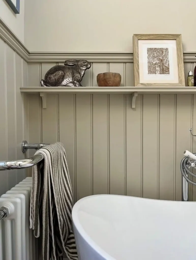 When choosing colours for walls vs woodwork/skirting, one of the most stylish ways to do it is by leaning into a paint shade that is 1-2 shades darker and using this on woodwork or panelling to define a room, with the lighter shade on top, drawing the eye up and giving the illusion of a bigger space.