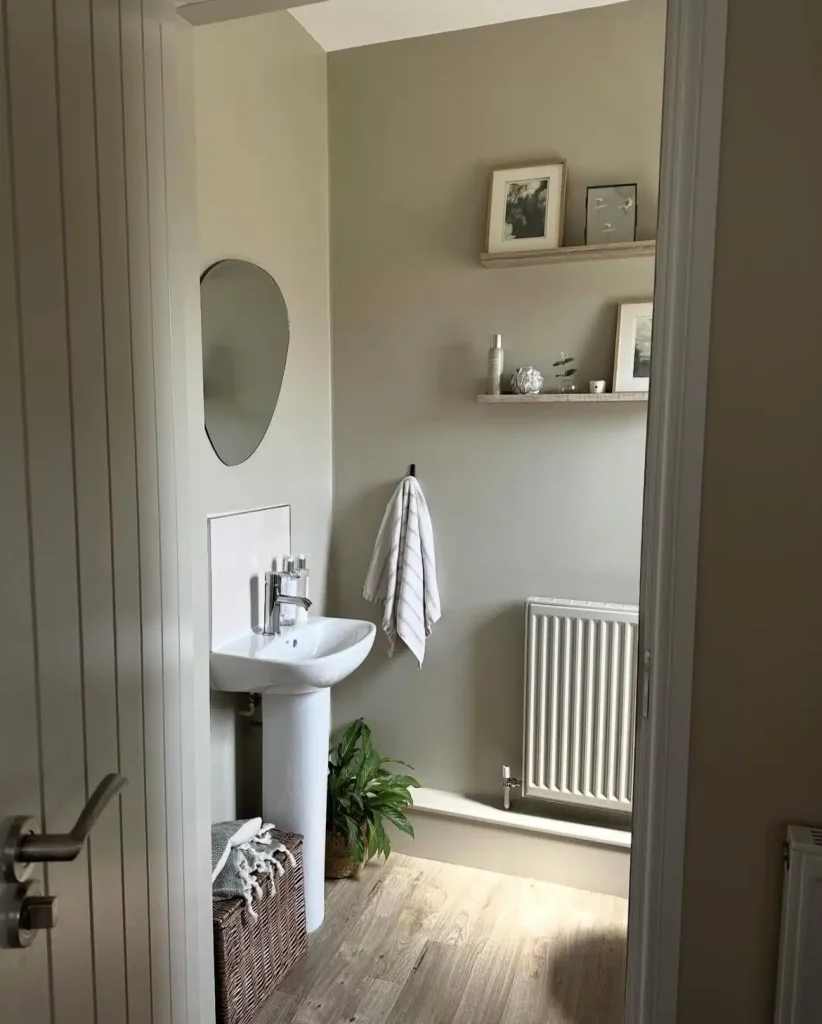 This sweet downstairs toilet has a Japandi inspired theme to it, with Drop Cloth being an incredibly fitting paint shade. Japandi design is the perfect amalgamation of both Japanese and Scandinavian design, bringing the best of both design principles to life.
